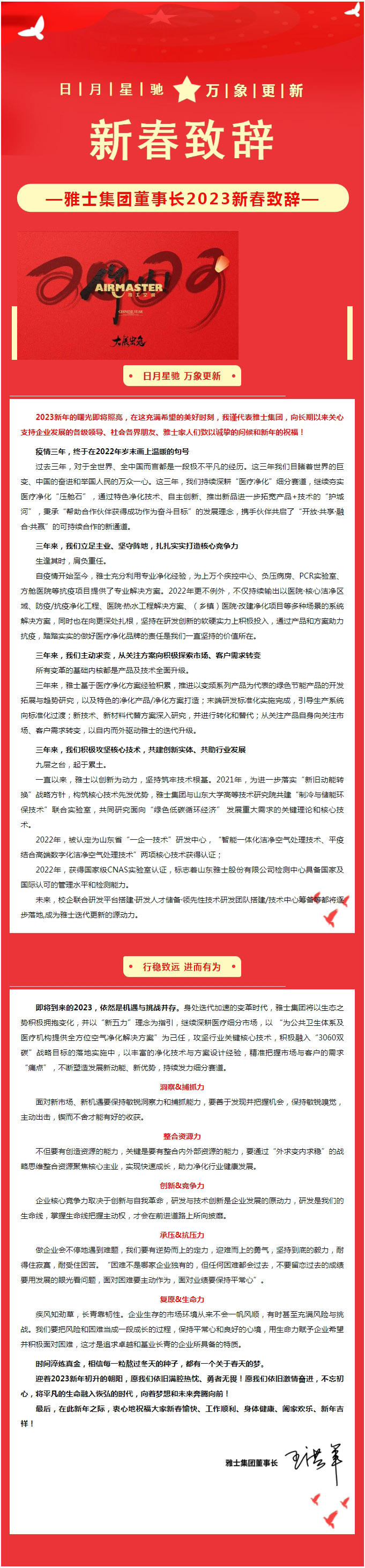 行穩致遠 · 進而有為——雅士集團董事長2023新春致辭!