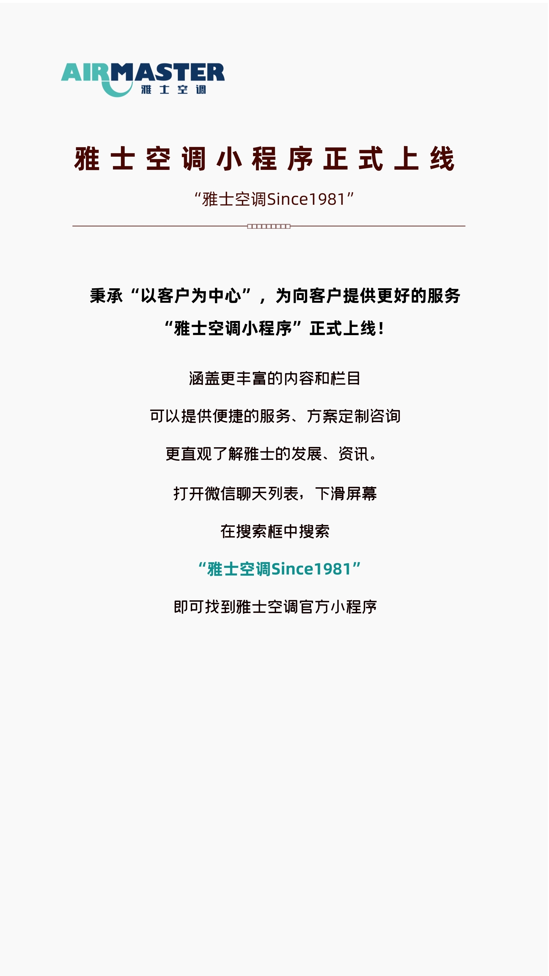 官宣! 雅士空調(diào)小程序上線嘍,速來圍觀!